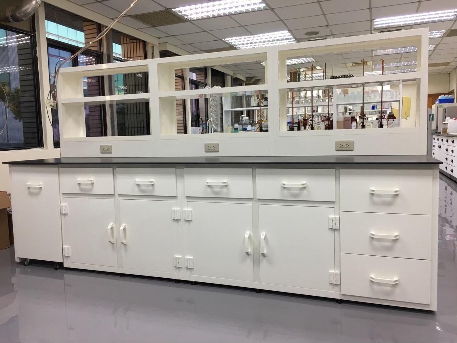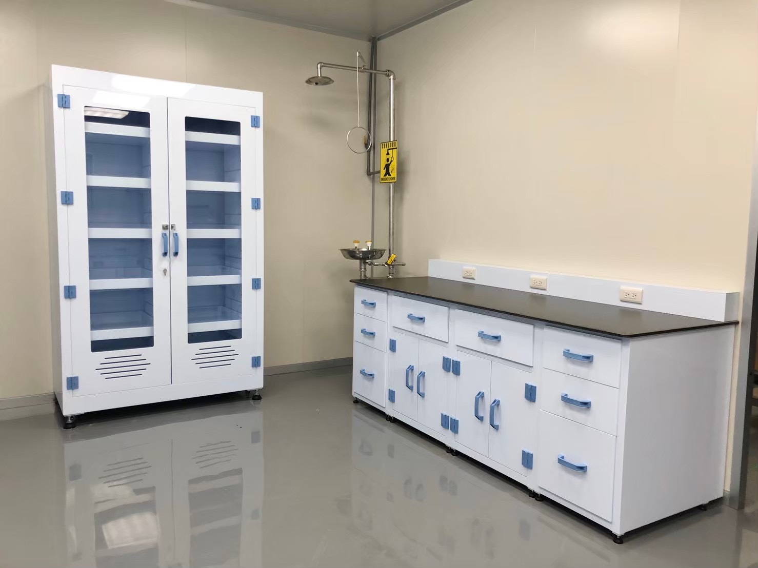 PP材質實驗桌憑藉其優異的耐化學性、耐熱性、輕量堅固與易清潔特性,已成為實驗室設備配置中的重要選擇。尤其在化學性腐蝕風險高、要求高潔淨度與頻繁操作的環境下,PP實驗桌展現出無可取代的優勢。在選購實驗桌時,了解PP材質的特性與應用場景,有助於打造更安全、耐用且高效的實驗工作空間。我司配合客戶環境需求,設計並製作經濟實惠及符合使用者需求之高品質PP實驗桌、PP藥品架、PP吊櫃、PP廢液櫃等PP材質的實驗室設備。高度客製化不受任何限制,例如桌面或櫃體增加排氣裝置。另有PP FM4910、PVC FM4910防火認證板材可供選擇。