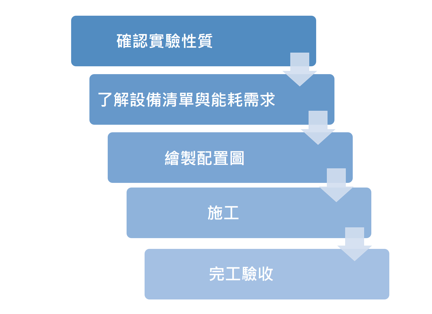 ● 根據實驗室基礎設施(例如燈具、FFU、電動門等)與儀器設備需求進行用電容量計算。